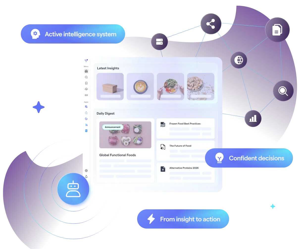 Knowledge management platforms solve findability — making reports searchable. DeepSights goes far beyond that. It synthesises across sources to uncover insights no single report contains, uses always-on AI agents to detect emerging market signals and alert your teams, validates concepts with AI-powered virtual consumers, and triggers action directly in your business workflows. The difference is the distance between a library and a strategist. A library stores what you’ve already learned. An active intelligence system continuously discovers what you need to know next.